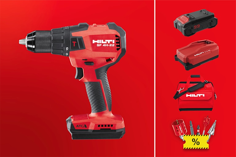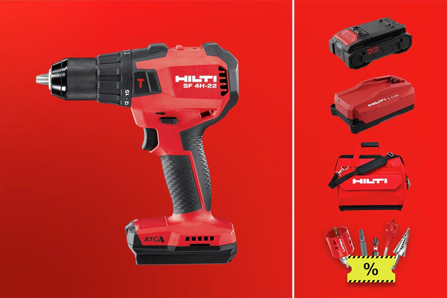 Kit includes SF 4H-22 Cordless drill driver, B 22-55 Nuron battery, C 4-22 Nuron compact charger, tool bag and 20% off inserts - Use code KIT26.